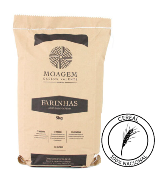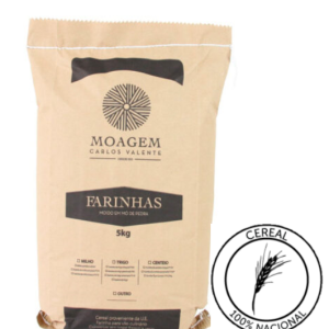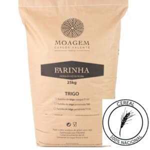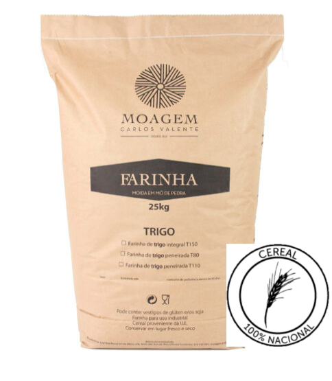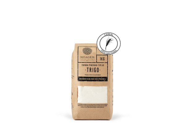 A Farinha de Trigo Tipo 65 moída em mó de pedra e peneirada, 100% Nacional.